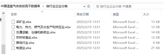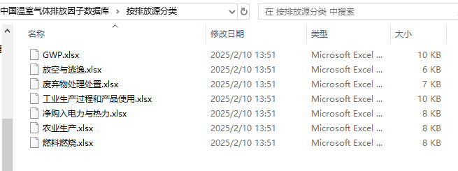 本数据是2025年1月最新更新的《国家温室气体数据库》,本数据记录了不同温室气体排放源的详细信息,分为两个大类,分别是按排放源分类和按行业企业分类,具体包含燃料燃烧、放空与逃逸、工业生产过程和产品使用、废弃物处理处置、农业生产、净购入电力与热力、GWP。这些信息可为政策制定、学术研究及企业环境战略提供重要支持。在分析时,需结合GWP指标,评估不同气体的潜在影响,因此为减排策略提供科学依据。