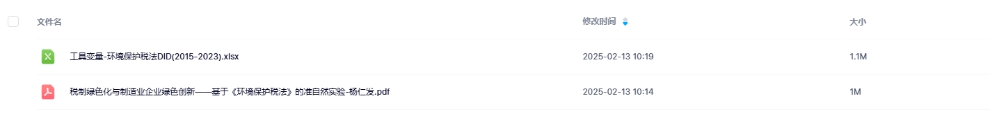 参考文献:[1]杨仁发,薛颢珺.税制绿色化与制造业企业绿色创新——基于《环境保护税法》的准自然实验[J].产业经济评论,2024,(05):149-164.