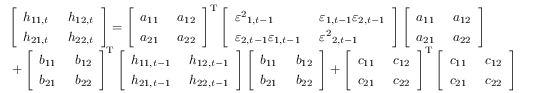 \varepsilon^{2}_{1,t-1} & \varepsilon_{1,t-1}\varepsilon_{2,t-1} \\