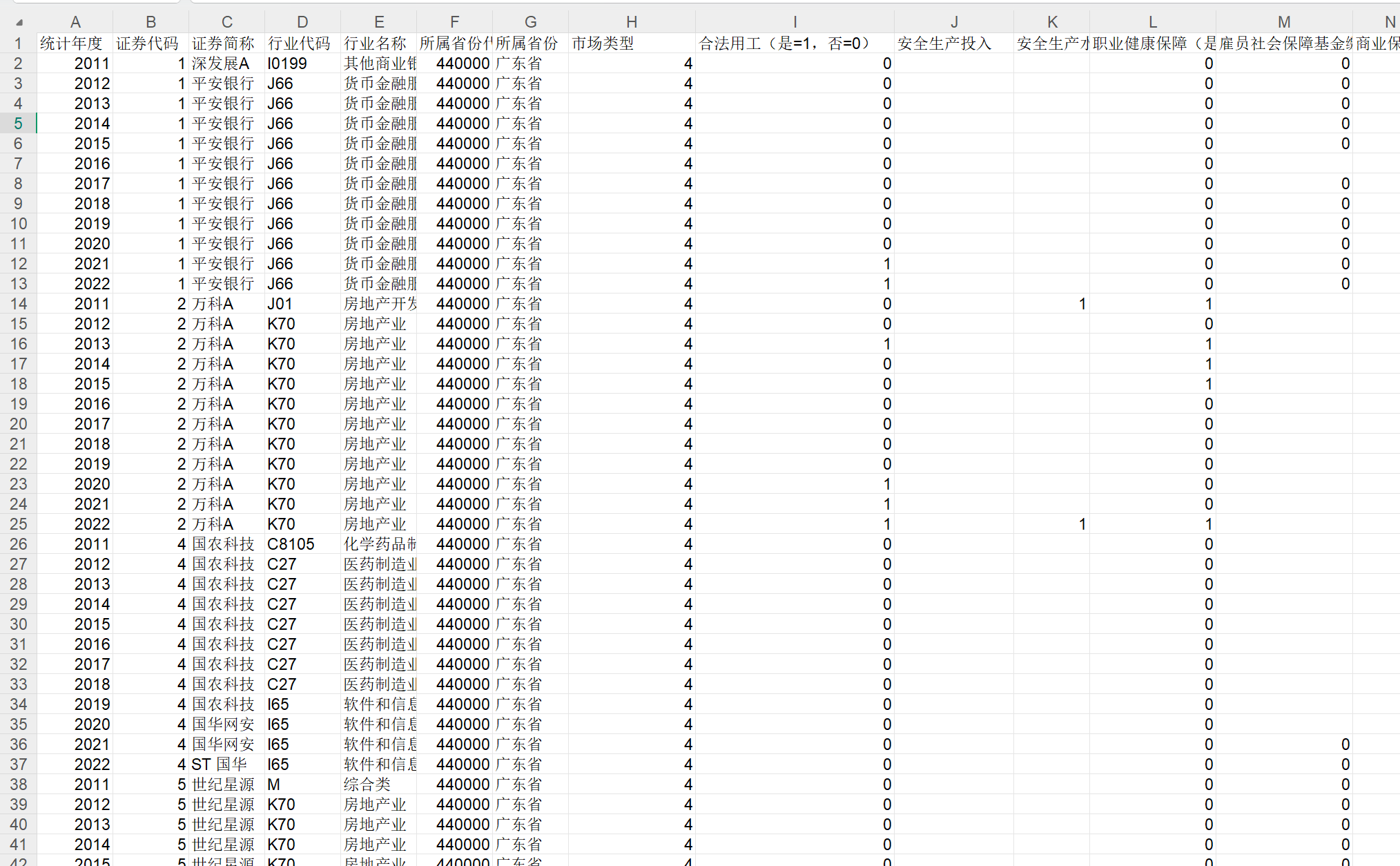 ▪ 数据说明:上市公司员工保障情况统计了中国上市公司在员工薪酬方面的关键指标。包含统计年度、证券代码、证券简称、行业代码、行业名称、所属省份代码、所属省份、市场类型、合法用工、安全生产投入、安全生产水平、职业健康保障、雇员社会保障基金缴付比例、商业保险、员工权益保护等变量。数据提供.dta和.xlxs两种格式。