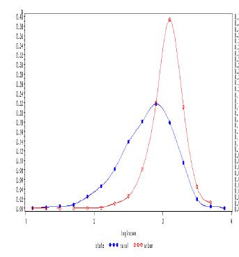 如题,想要在一幅图上画出两条不同的密度曲线图(图在下方),不知道如何实现,如果有知道的请帮个忙,谢谢!!!