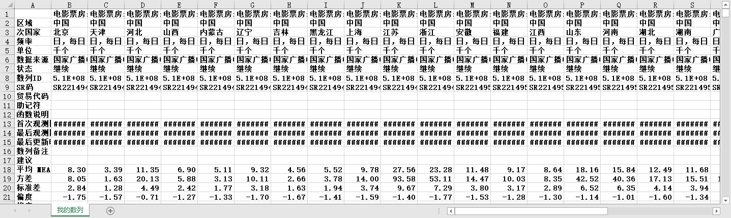 全国31个省份电影票房日度数据2017-20250211销售收入观影场次网售占比单座产出场均人次当日票房销售金额网络销售等