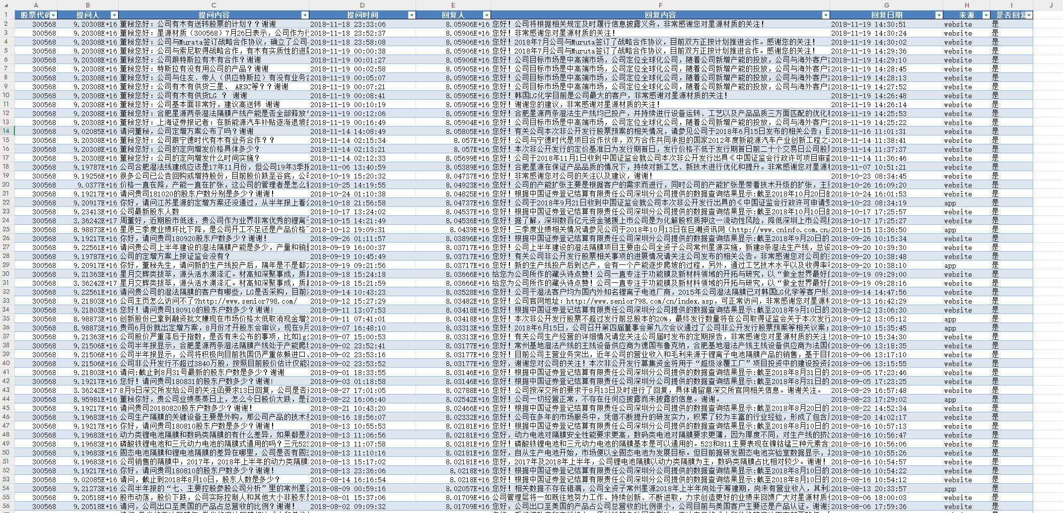 数据简介深证互动易是深圳证券交易所推出的一个公益性信息交流互动平台,它为投资者与上市公司之间的沟通提供了一个直接、快捷的渠道。通过这个平台,投资者可以向上市公司提出问题,上市公司则需在规定时间内对这些问题进行回复。