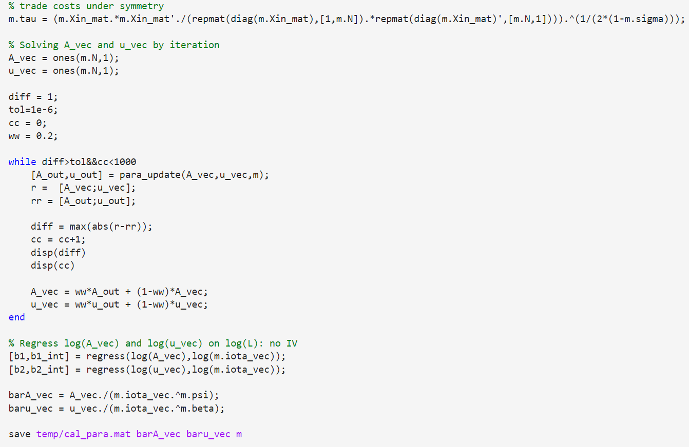 本资料旨在为具有该领域研究兴趣的同学提供量化空间均衡模型的实操教程。近年来,简约式方法逐渐陷入“审美疲劳”困境,以空间一般均衡为代表的结构模型开始在中文期刊流行,国内学者们也开始对这类方法给予较大关注。但陡峭的学习曲线让大量研究者望而生畏,经常“从入门到放弃”。该资料中逐帧还原了各种量化空间模型的实操过程(包括模型设定、模型推导、均衡定义、均衡求解、反事实模拟),且附有带注释的MATLAB代码。