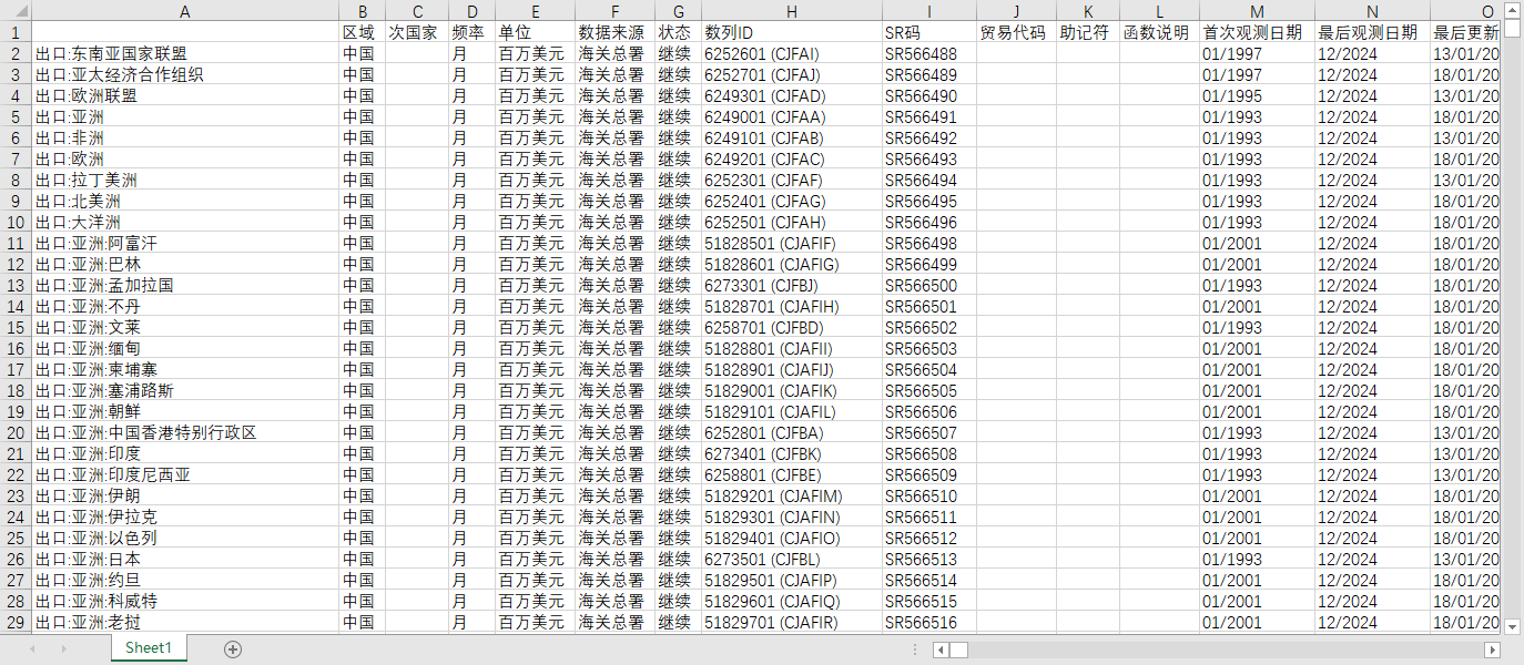 全国进出口全球世界各国家国际贸易1993-202412月度数据主要国别地区进口出口