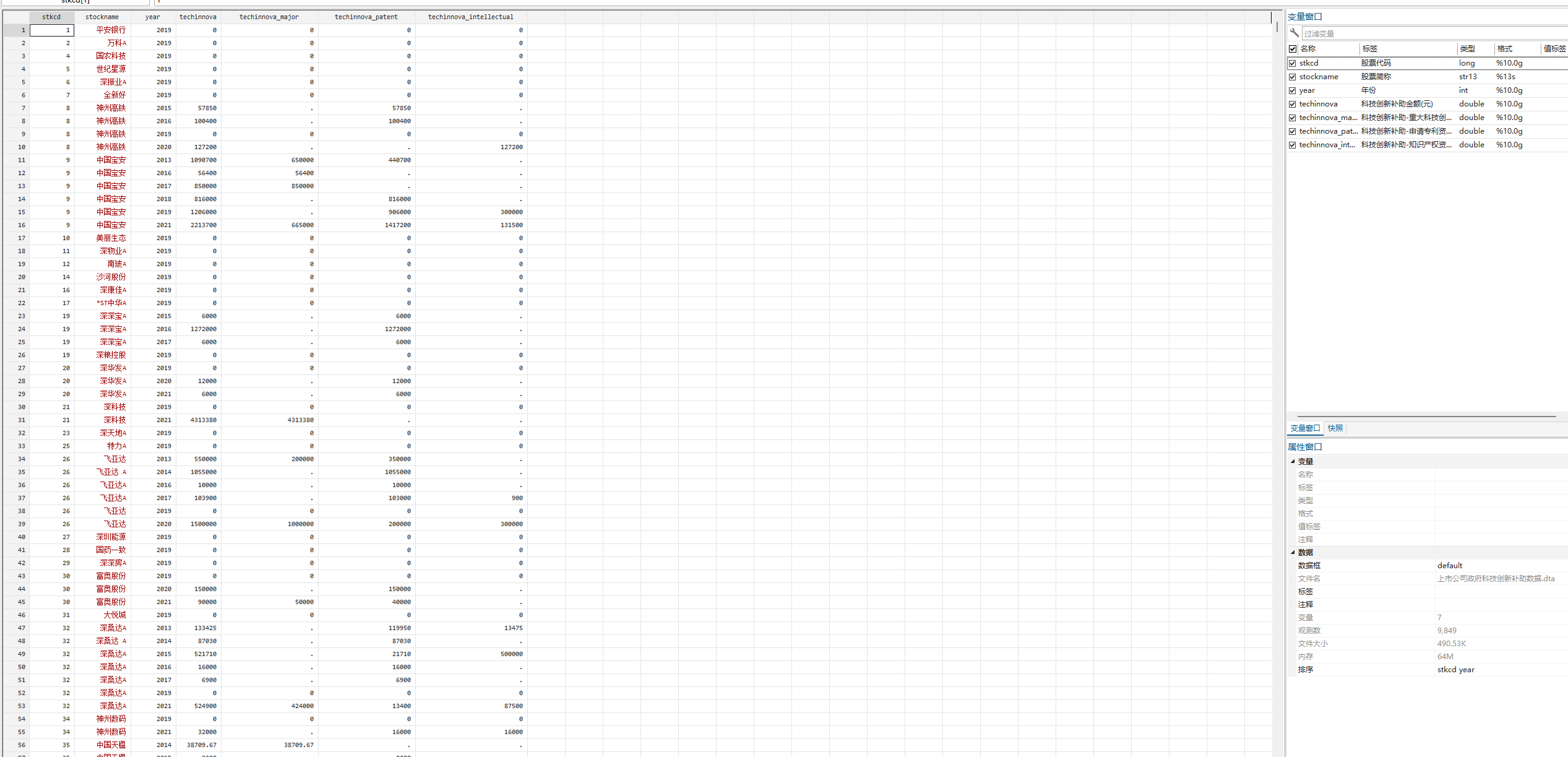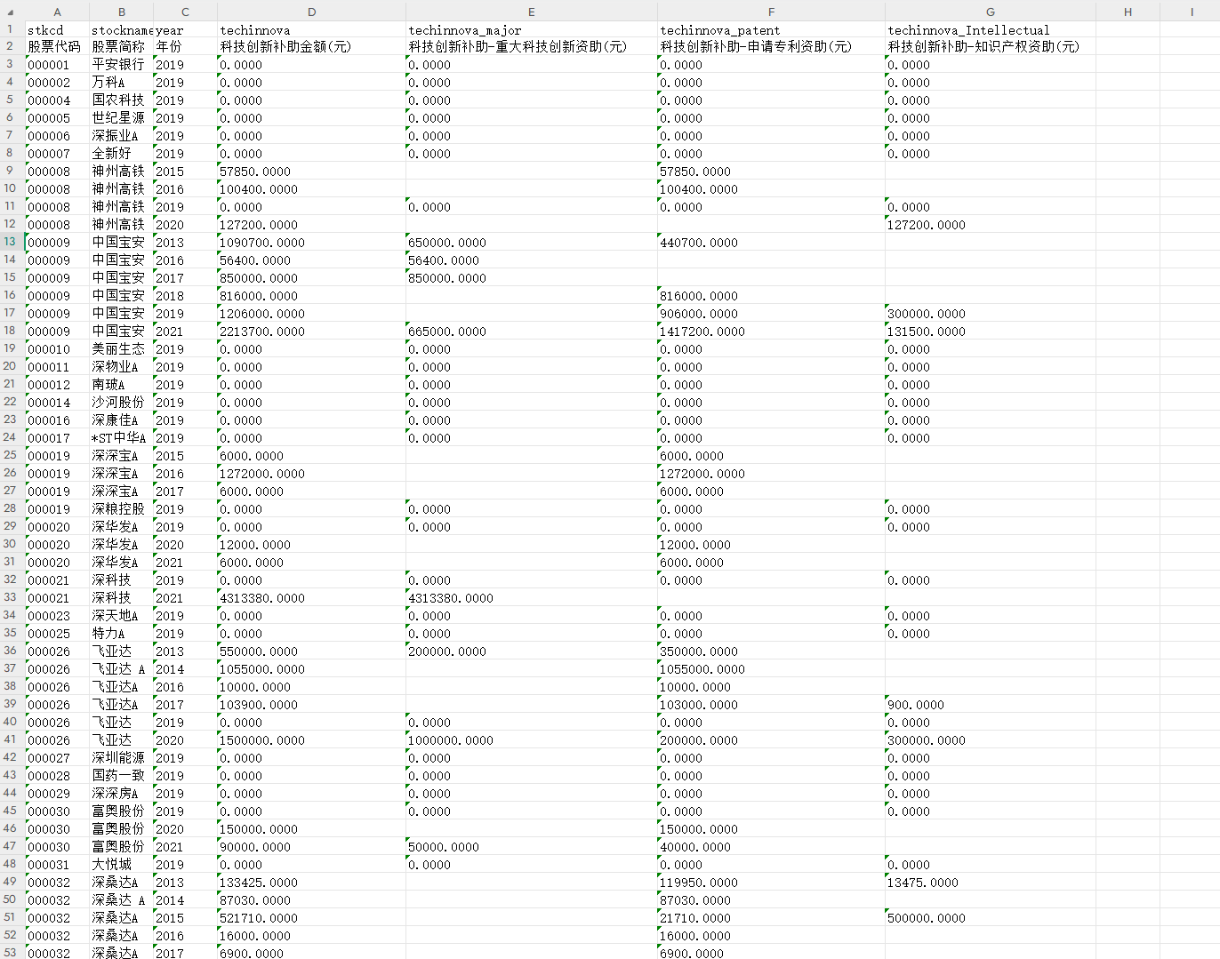 ▪ 数据说明:上市公司政府科技创新补助数据整理了上市公司年报中政府补助项目披露的涉及技术创新补助的项目金额,包括科技创新补助金额、科技创新补助-重大科技创新资助、科技创新补助-申请专利资助、科技创新补助-知识产权资助等变量,缺失数据为企业年报中未进行披露,数据提供.xlsx和.dta格式,可使用excel或stata打开。