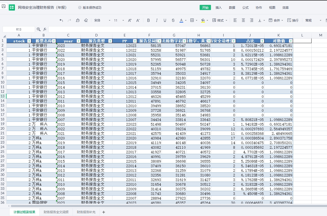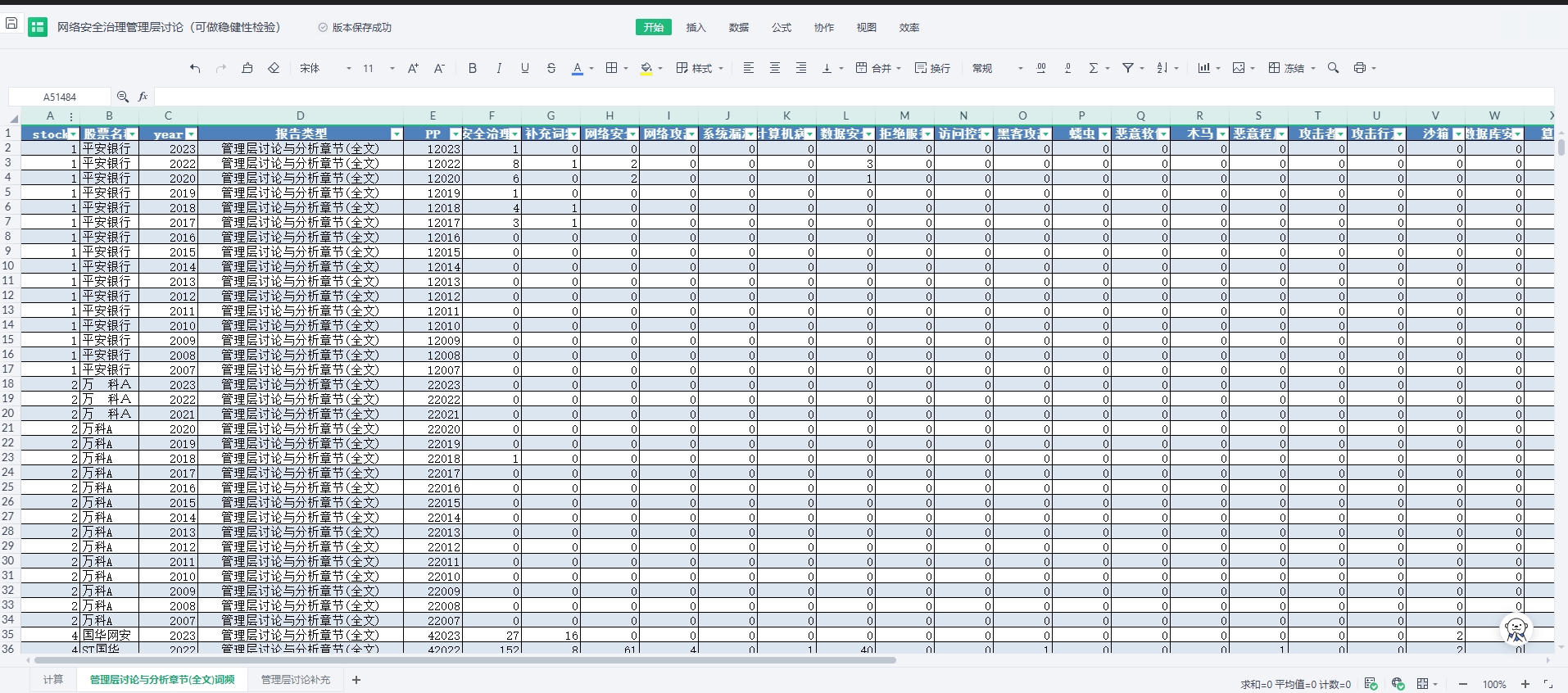 四、测算方式参考王辉(2024)老师《金融评论》的做法,网络安全治理种子词的选取主要依托于《中华人民共和国网络安全法》、《中华人民共和国数据安全法》、《关键信息基础设施安全保护条例》等法律法规文件与《网络安全审查办法》、《云计算服务安全评估办法》、《2020年我国互联网安全态势综述》、《中国互联网网络安全报告》、《全球网络安全政策法律发展年度报告》等研究报告文件,包含网络攻击、系统漏洞、计算机病毒、数据安全、黑客攻击等关键词