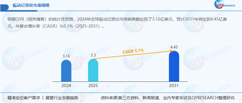 振动记录仪,是一种能够实时监测并记录设备振动状态的仪器。它通过内置传感器,将机械振动转化为电信号,再经处理、分析,以直观数据或波形展现振动特性。无论是高速运转的电机、引擎,还是桥梁、建筑等大型结构,振动记录仪都能洞察其“健康”状况,提前预警潜在故障,避免灾难性后果,是保障生产安全、提升设备可靠性的利器。据市场调研机构数据,2031年全球振动记录仪市场销售额预计将达到30.3亿元,年复合增长率(CAGR)为5.1%(2025-2031)。