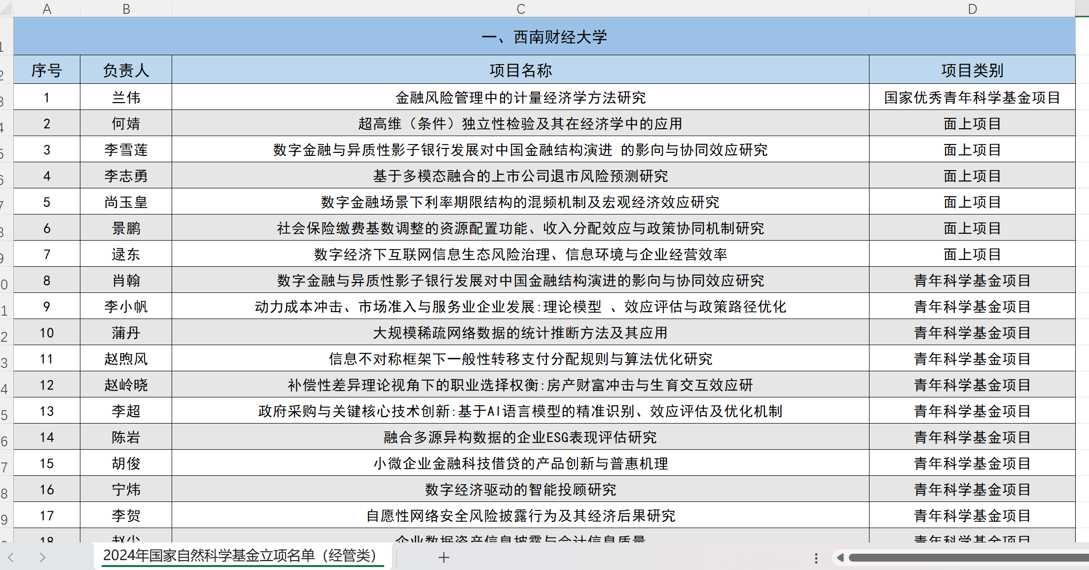 数据名称:2024年国家自然科学基金立项名单经管类名单