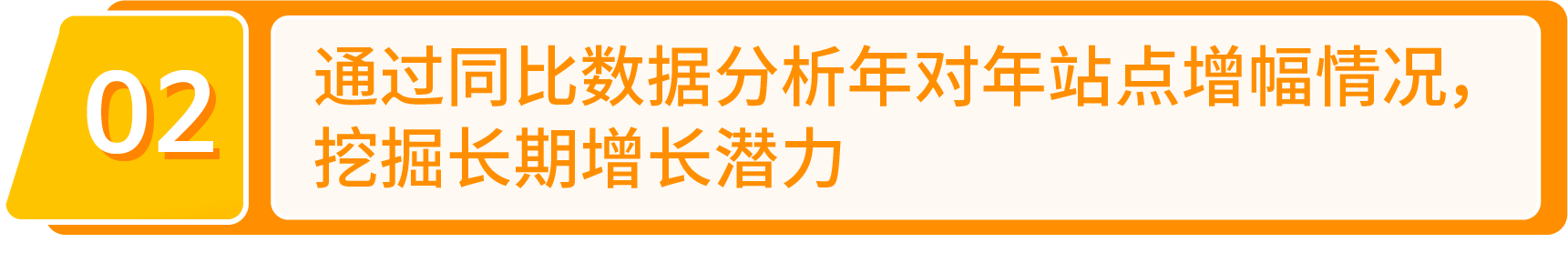 通过将上周/月/季销售额数据对比去年同周/月/季的销售数据,分析年对年站点增幅的数据以此把握商品类目趋势,长期数据表现利于卖家优化长期店铺发展目标与策略。