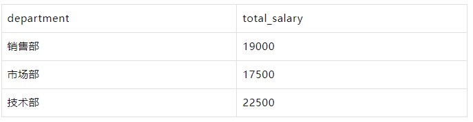 示例-sum 按部门分组,计算每个部门的总薪水: