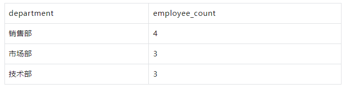 示例-count 按部门分组,计算每个部门的员工数: