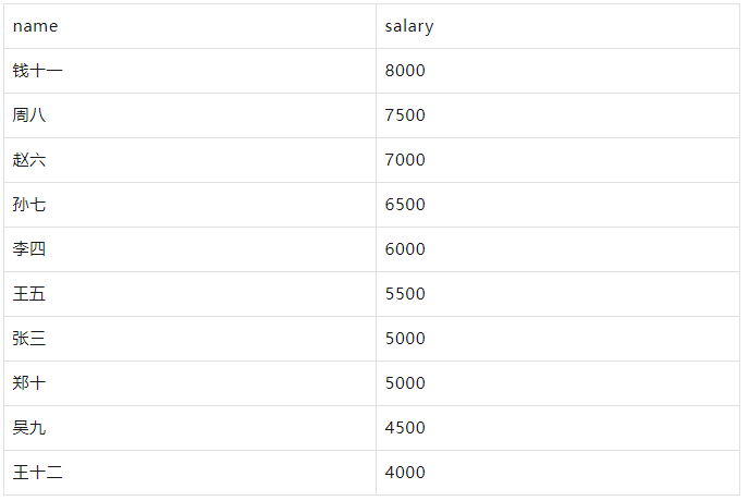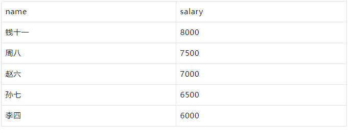 示例 要获取前5名最高工资的员工信息,并按工资降序排序: