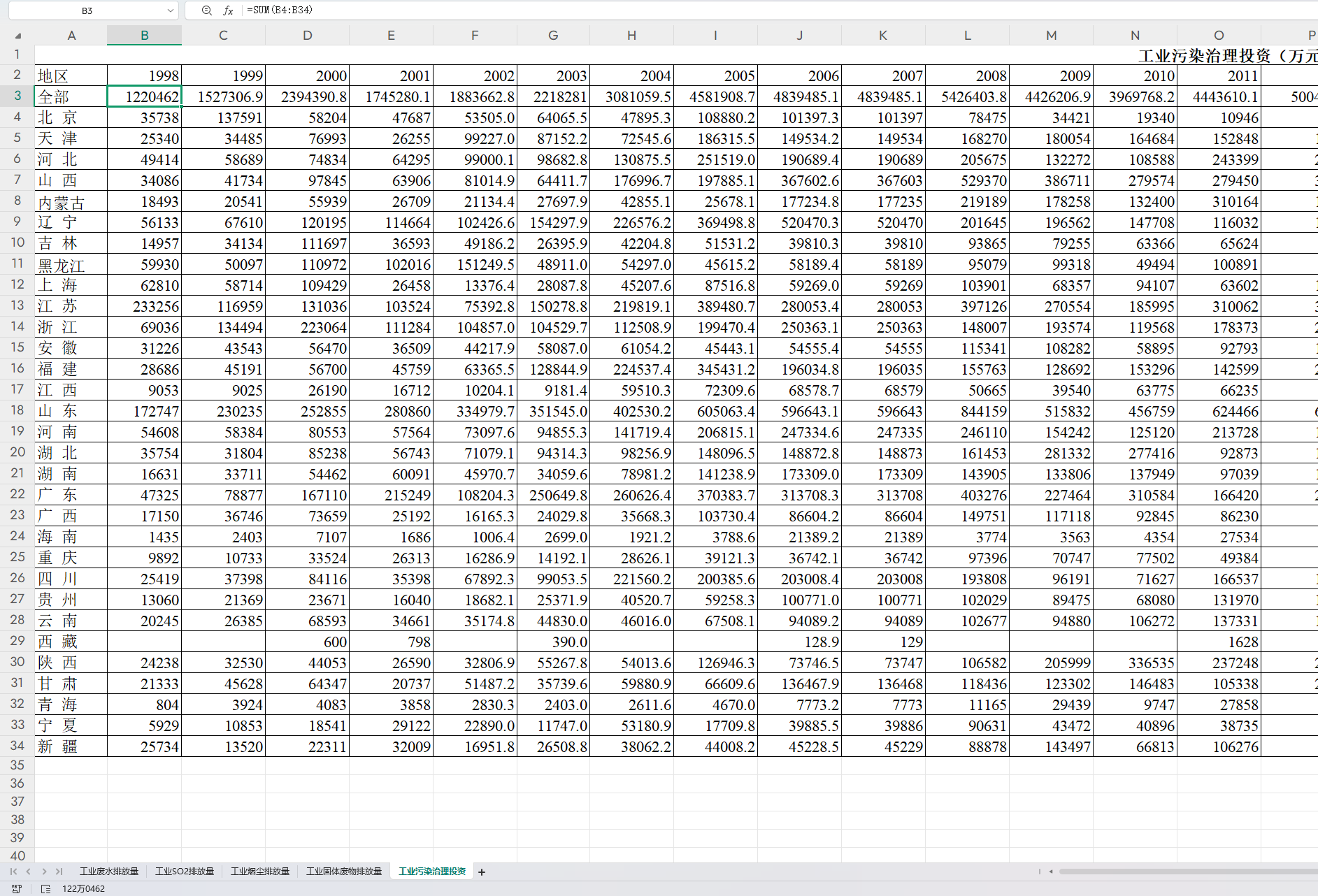 数据名称:工业三废(分地区)省级面板数据数据2023-1998(省级层面)