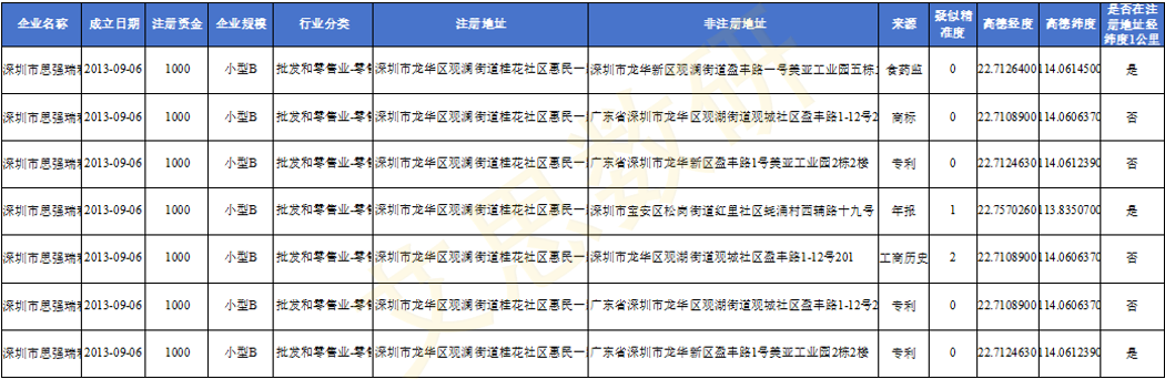 公安部的消防检查地址、企业官网的联系地址、招聘平台的办公地点、专利文件的发明创造所在地、招投标文书的业务地址以及二级市场披露的运营据点等。通过严谨的交叉校验,促使这些碎片化数据交互印证,同时将顺企网、慧聪网等黄页网站信息以及食药监、住建部等国家部委公开的数据纳入统一处理框架,精细梳理和严格核验,锁定企业实际经营地址。
