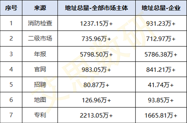 表3 按重要来源统计的企业经营地址库总量