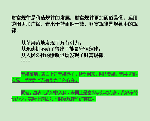 可见,在能力的转换和传递过程中,能力大,体现出来的能力就大;能力小,体现出来的能力就小。这就是著名的财富规律。(总论点)