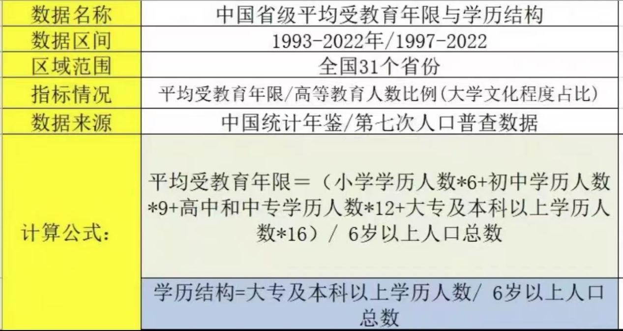 中国各省平均受教育年限与学历结构(1993-2022).zip