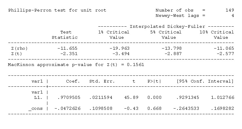 小白一只,在stata中做单位根检验,ADF和PP得出的结果不一样,求祥解!