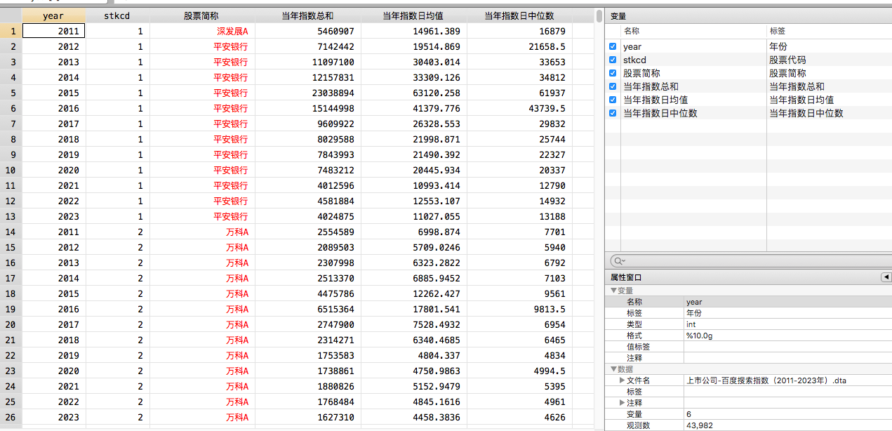 数据包括年度指数和、日均值、日中位数。百度指数反映了关键词被搜索的次数,是衡量投资者关注度的代理变量。