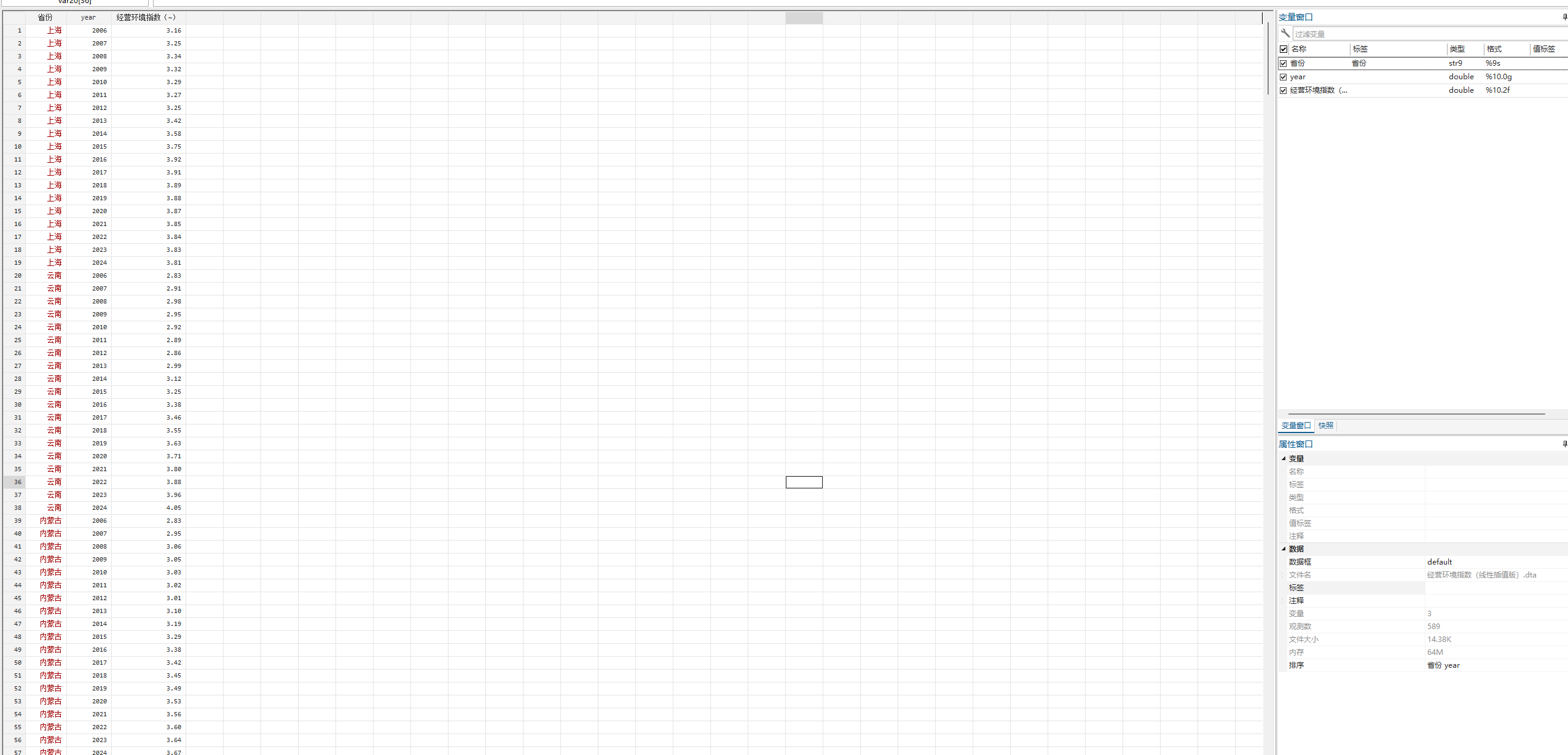 【更新至2024】经营环境指数线性插值Stata代码过程(2024-2006)省面板数据计算