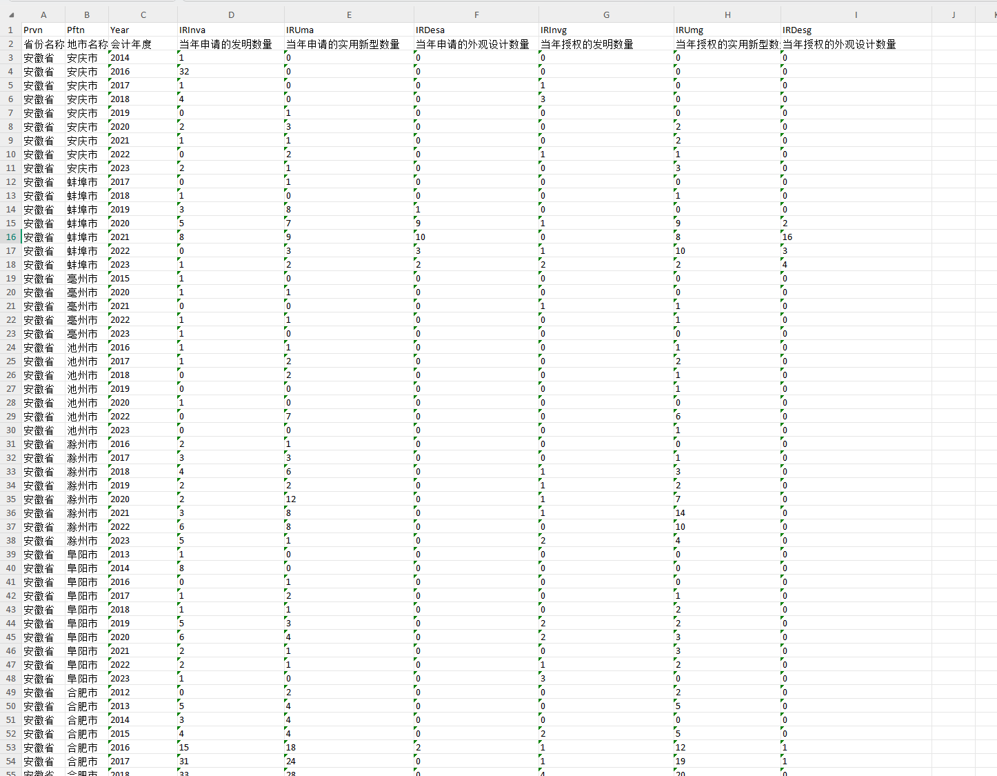 IRInvg[当年授权的发明数量]-当年该地区获得的工业机器人发明专利数量,单位:个