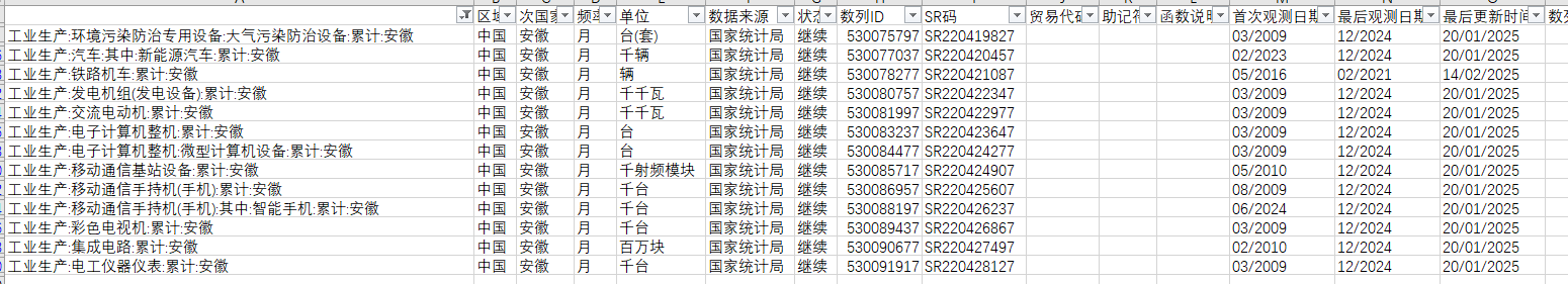 工业生产产品产量移动通信手持机(手机)其中智能手机细分31个省份地区202406-202412月度及累计数据
