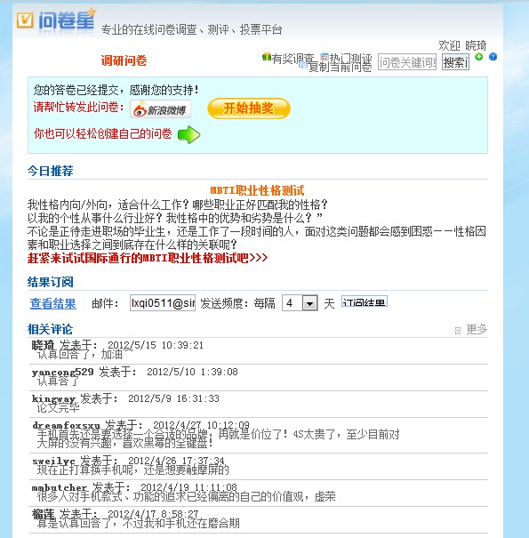 完成问卷的截图