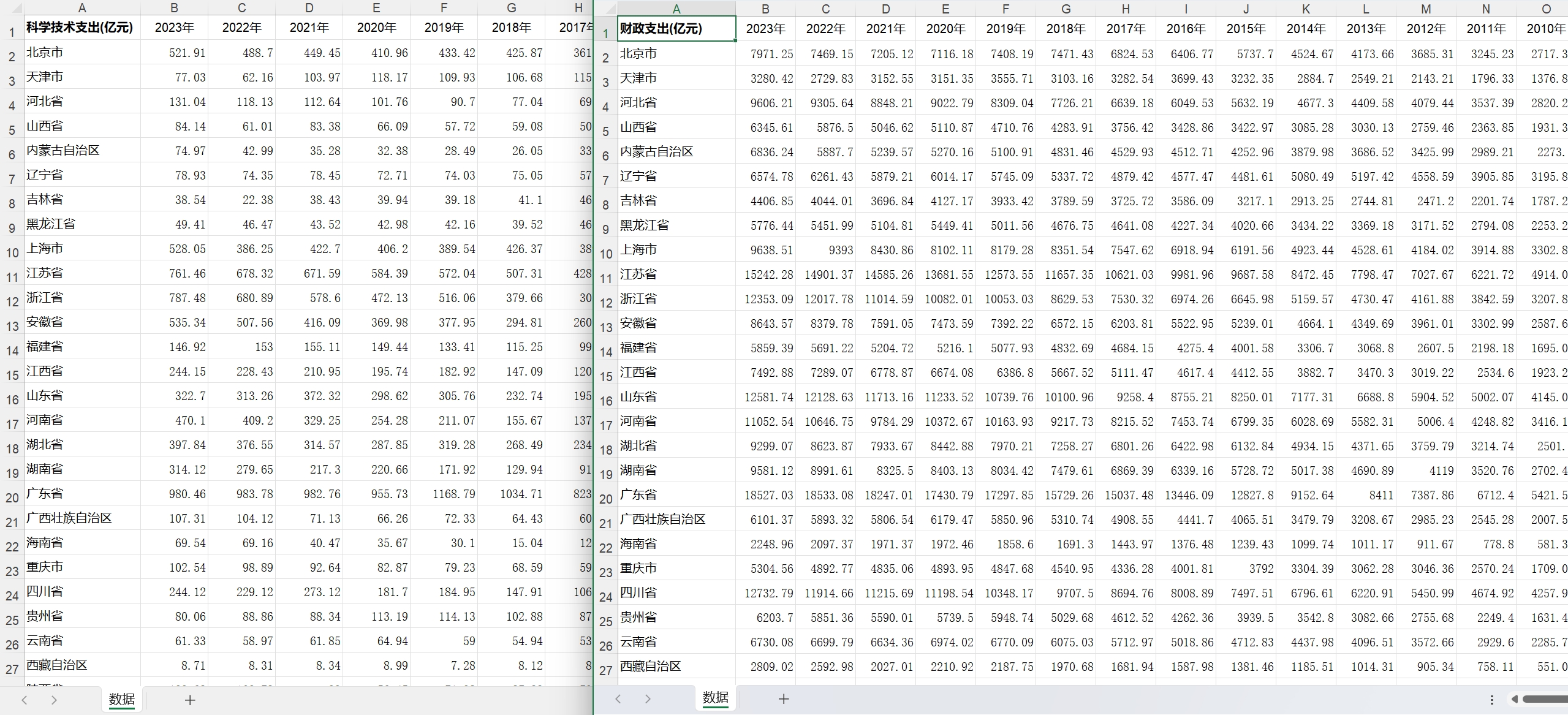 2000-2023年 各省 省级 31省 财政支出 教育支出 科技支出 社保就业支出 医疗卫生支出