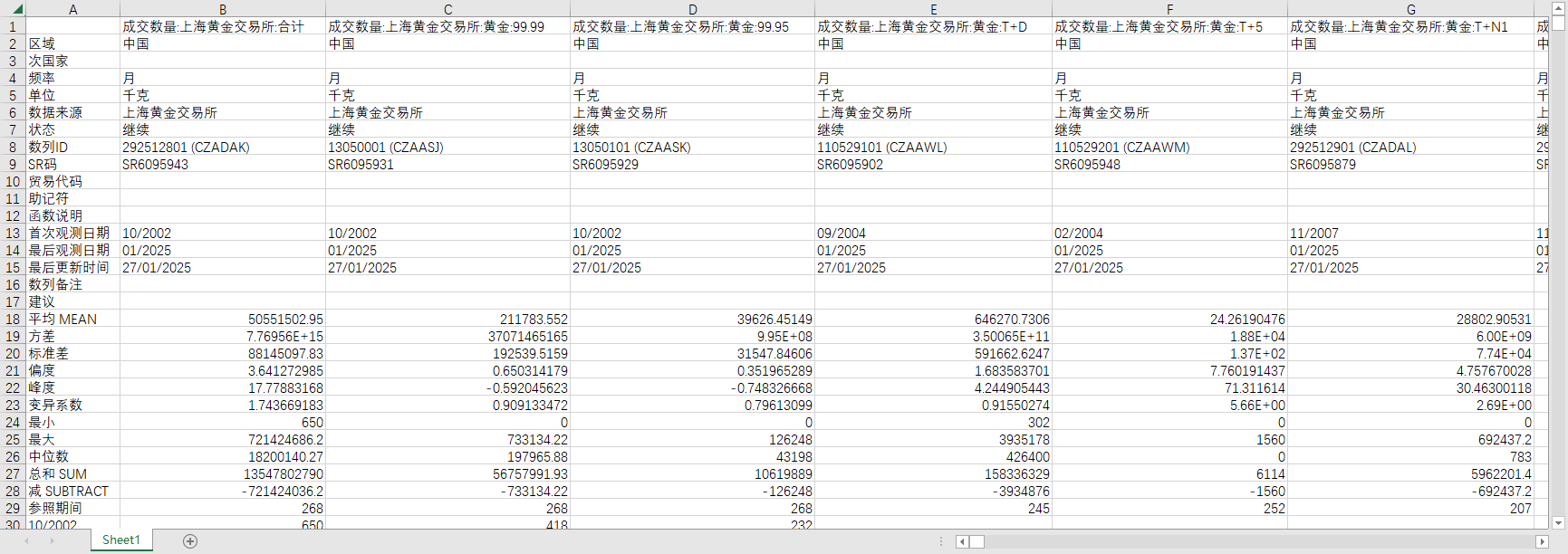 金属交易贵金属上海黄金交易所成交量和额2002-202501月度数据黄金白银铂