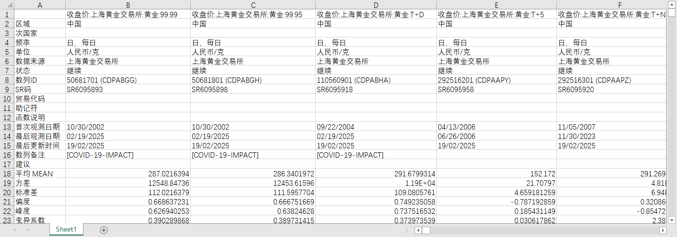收盘价:上海黄金交易所:黄金:99.99 收盘价:上海黄金交易所:黄金:99.95 收盘价:上海黄金交易所:黄金:T+D 收盘价:上海黄金交易所:黄金:T+5 收盘价:上海黄金交易所:黄金:T+N1 收盘价:上海黄金交易所:黄金:T+N2 收盘价:上海黄金交易所:黄金:50g 收盘价:上海黄金交易所:黄金:100g 收盘价:上海黄金交易所:铂:99.95 收盘价:上海黄金交易所:铂:T+5 收盘价:上海黄金交易所:白银:999 收盘价:上海黄金交易所:白银:T+D