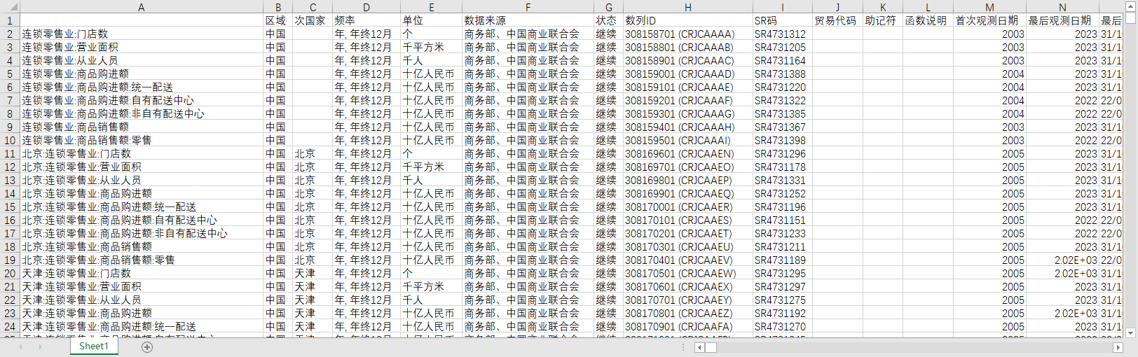 门店数 营业面积 从业人员 商品购进额 商品购进额:统一配送 商品购进额:自有配送中心 商品购进额:非自有配送中心 商品销售额 商品销售额:零售