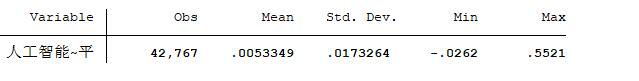 基于上市公司财务报告附注中披露的固定资产和无形资产的科目名称及其对应的资产额度,可以整理出企业与人工智能相关的无形资产投资和固定资产投资额度。具体而言,与企业智能化转型相关的无形资产项目是指科目名称中包含“智能”、“软件”、“系统”、“信息平台”、“数据”等关键词的无形资产;相应的固定资产项目则为科目名称中包含“电子设备”、“计算机”、“数据设备”等词语的固定资产。通过将上述筛选出的无形资产投资和固定资产投资额度进行汇总,得到企业人工智能相关投资的总额,再将其除以企业年度资产总额,所得比重即可用于测度企业的智能化投资水平。