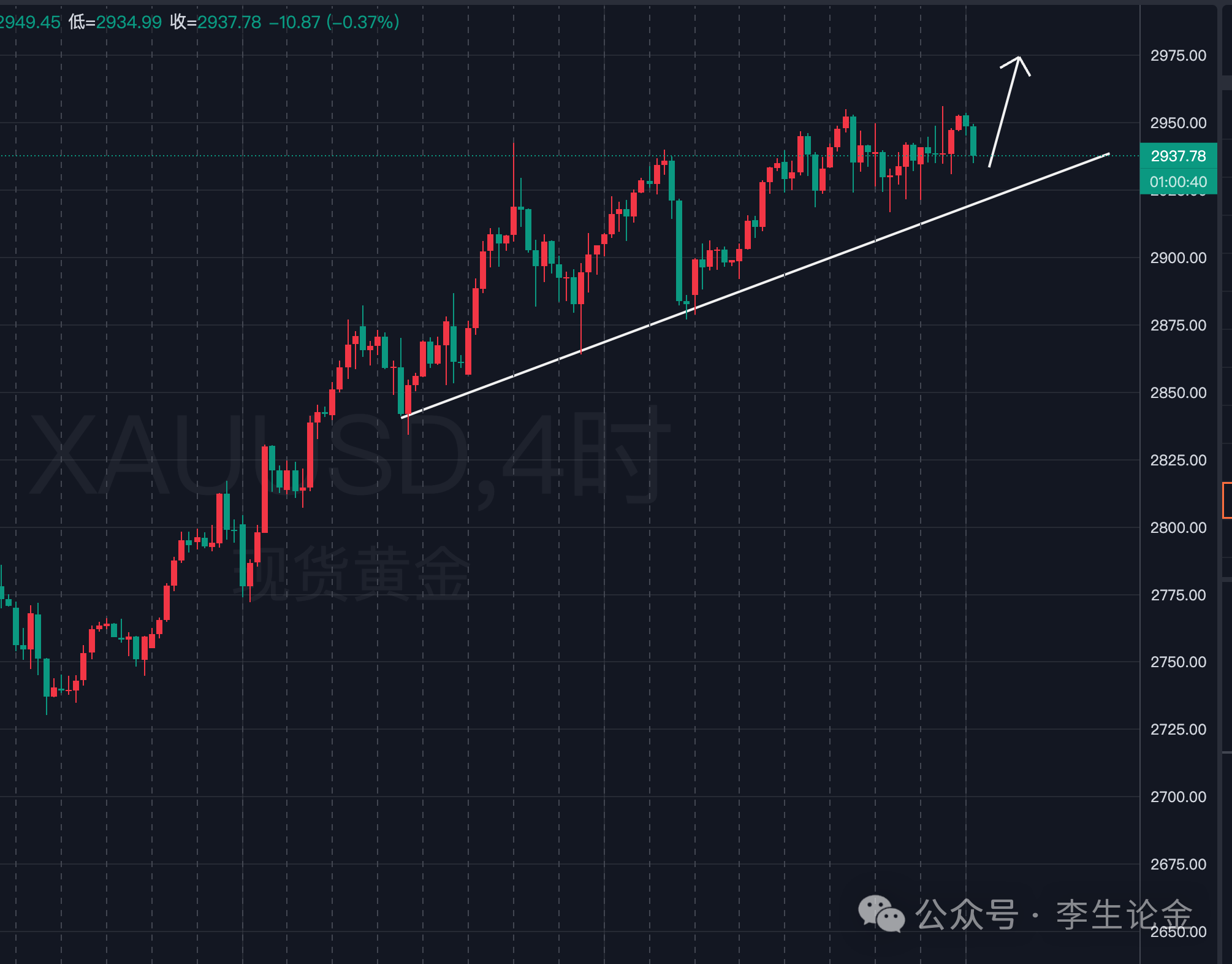 今天,同样和周一的思路一致,2920-15的区域是防守,依托此位置的支撑然后回落后做多,但要注意不要追高,就像昨天直播中强调,价格处于2945上方追多的盈亏比不合理,没有性价比,耐心等回落后在2930上下再考虑。