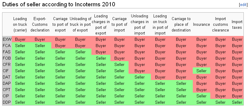 incoterms2010贸易术语买卖双方责任分工简图 看起来方便 免费提供