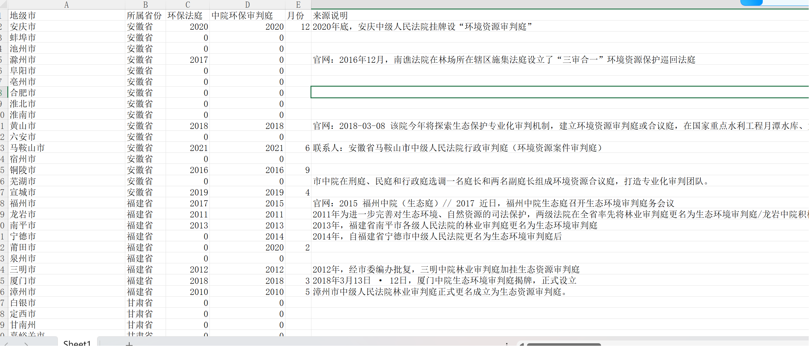 本数据来源于各中级人民法院官方网站及相关新闻报道,通过文本中各市中级环保法庭设立时间与最高人民法院或各省高级人民法院发布的《中国环境资源审判》进行对照得出。