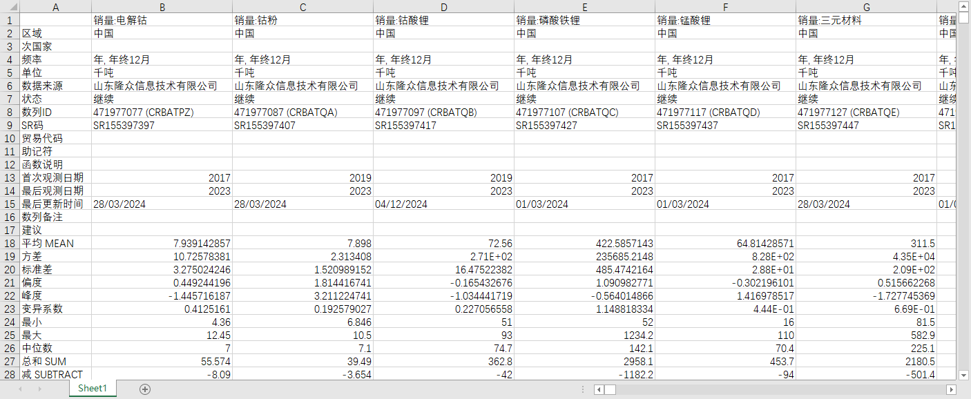 销量:电解钴 销量:钴粉 销量:钴酸锂 销量:磷酸铁锂 销量:锰酸锂 销量:三元材料 销量:三元前驱体 销量:四氧化三钴 产销率:硫酸钴 产销率:氢氧化锂 产销率:碳酸锂