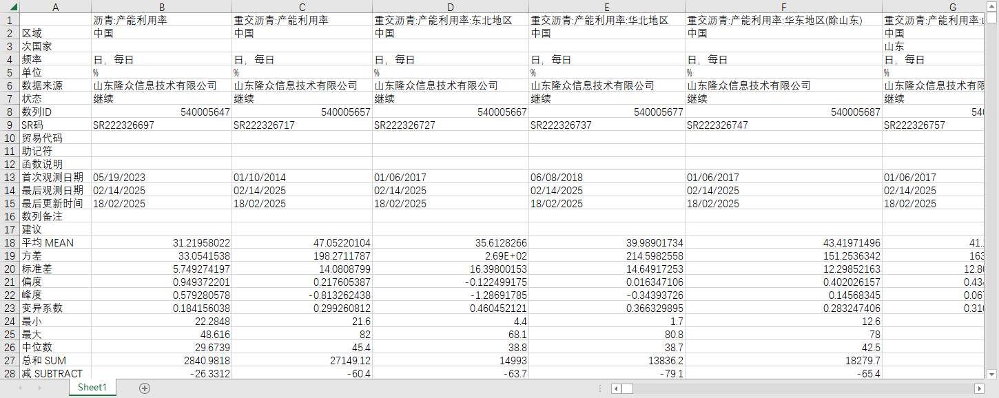 全国沥青有效产能和产量重交改性沥青产能利用率2017-202502日度数据分大区山东