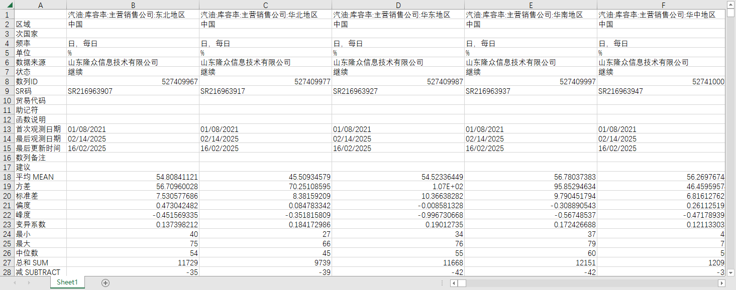 汽油:库容率:主营销售公司:东北地区 汽油:库容率:主营销售公司:华北地区 汽油:库容率:主营销售公司:华东地区 汽油:库容率:主营销售公司:华南地区 汽油:库容率:主营销售公司:华中地区 汽油:库容率:主营销售公司:西北地区 汽油:库容率:主营销售公司:西南地区 汽油:厂内库容:独立炼厂 汽油:厂内库容:独立炼厂:山东 汽油:商业库存 汽油:厂内库存:独立炼厂:东北地区 汽油:厂内库存:独立炼厂:华北地区 汽油:厂内库存:独立炼厂:华东地区(除山东) 汽油:厂内库存:独立炼厂:山东 汽油:厂内库存:独立炼厂:华南地区 汽油:厂内库存:独立炼厂:华中地区 汽油:厂内库存:独立炼厂:西北地区 汽油:厂内库存:独立炼厂:西南地区 汽油:贸易商库存 汽油:贸易商库存:108家企业 汽油:贸易商库存 汽油:厂内库存:山东