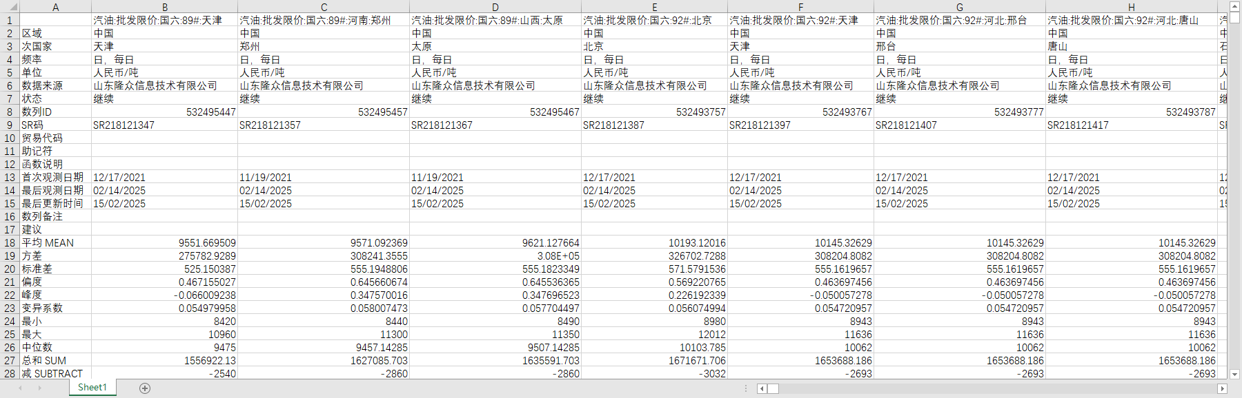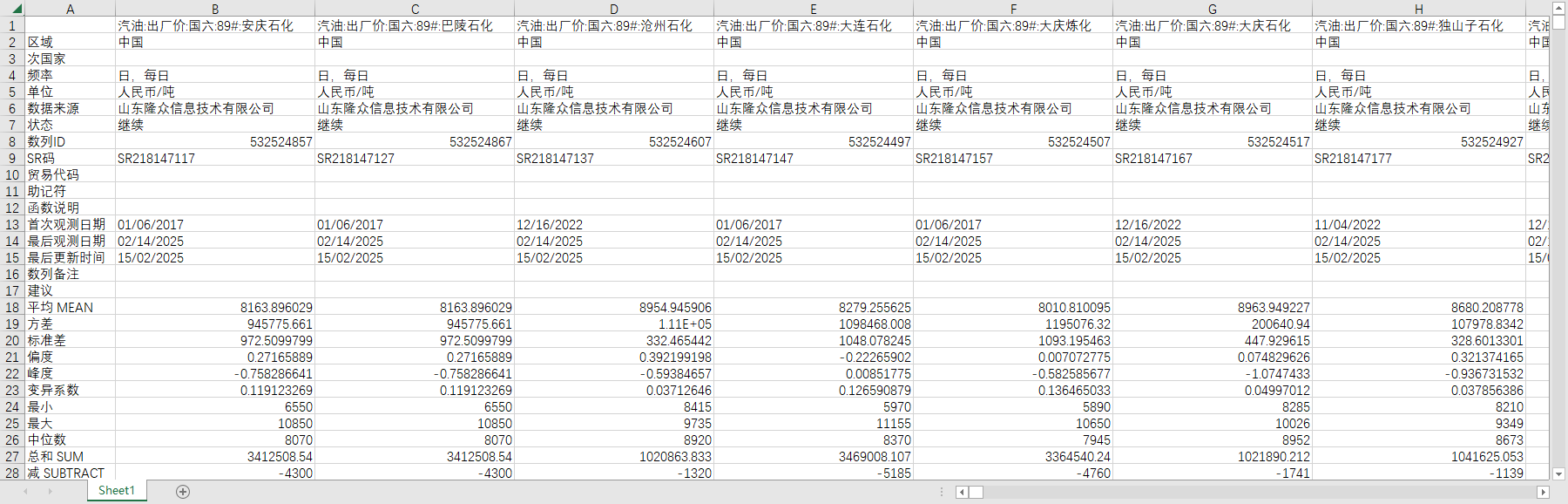 全国汽油出厂价2021-202502周度数据分省份重点城市炼化厂国六89#92#95#98#汽油