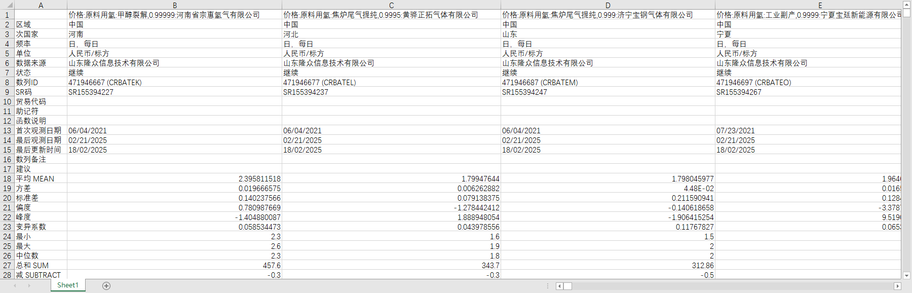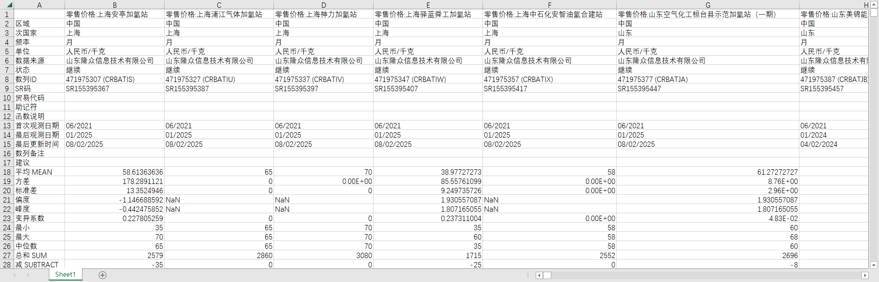 全国氢气加氢站零售价格氢能源原料用氢企业报价分重点城市2021-202502日度氢气2021-202502数据