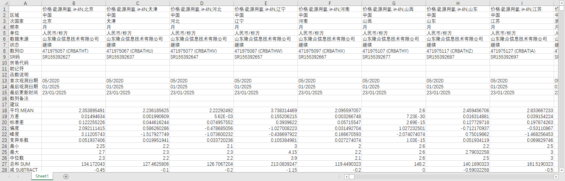 全国氢能源价格日度分省份2020-202502日度氢气2021-202502数据