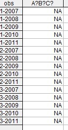 我尝试着用简单的点的面板数据输入进去,却是这么显示的,为什么A?B?C在一个框里啊。。。是不是我的eviews6有bug?