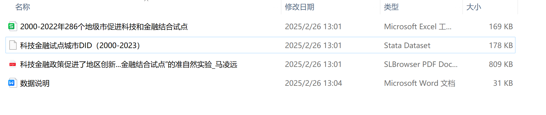 数据名称:地级市金融科技融合政策支持数据00-23年科技金融试点城市DID