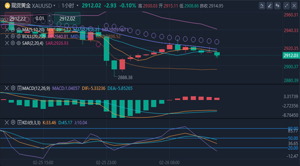 周三(2月26日)亚市,现货黄金反弹受阻,早些时候一度触及2930关口,目前交投于2916.72美元/盎司附近。路透技术分析师指出,现货黄金可能重新测试每盎司 2957 美元的阻力位,因为它已经稳定在 2891 美元的支撑位附近。