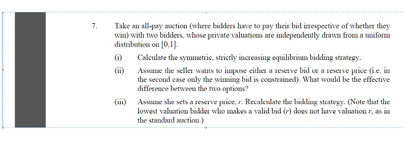 bnuwwb 发表于 2012-4-26 10:09 我想了一下,发现第一问其实只需要bid是单调的就可以,最后可能求解。第三问要考虑两个情况,排除pv小于r ...