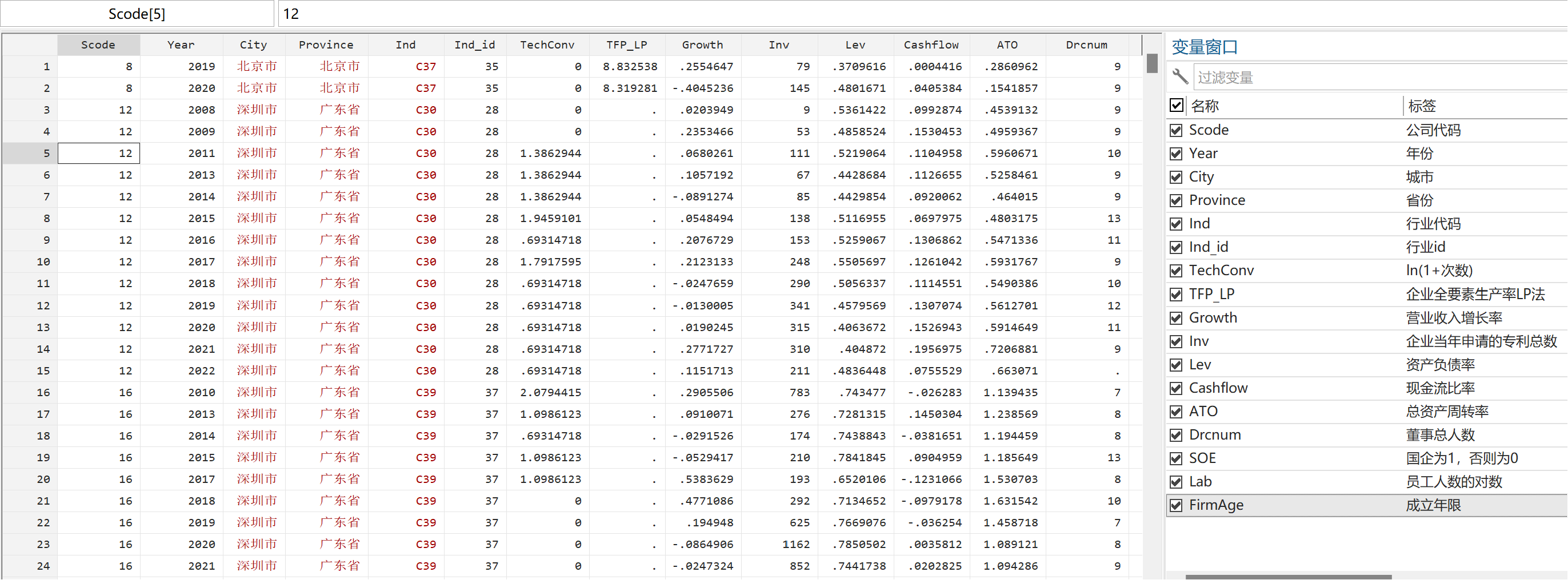 代码中所涉及的全部指标在数据中都有标签定义,可以参照原文直接进行实证学习,本数据只包含基准回归部分内容。