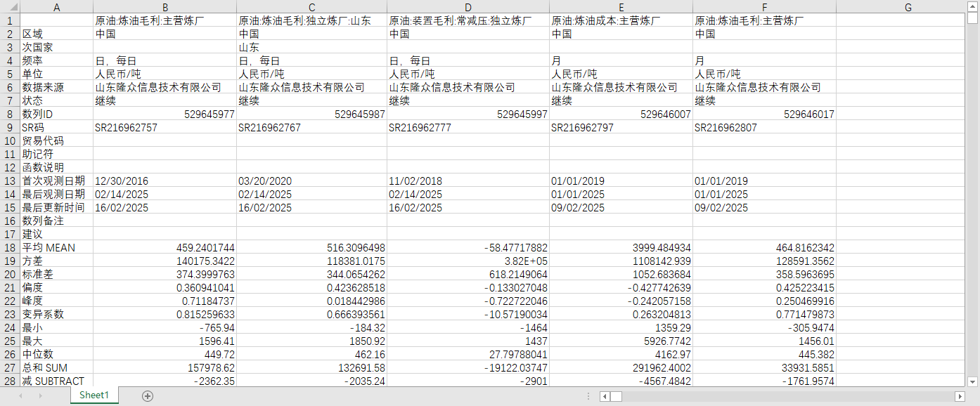 全国原油成本收益2016-202502周度数据主营独立炼厂分大区山东