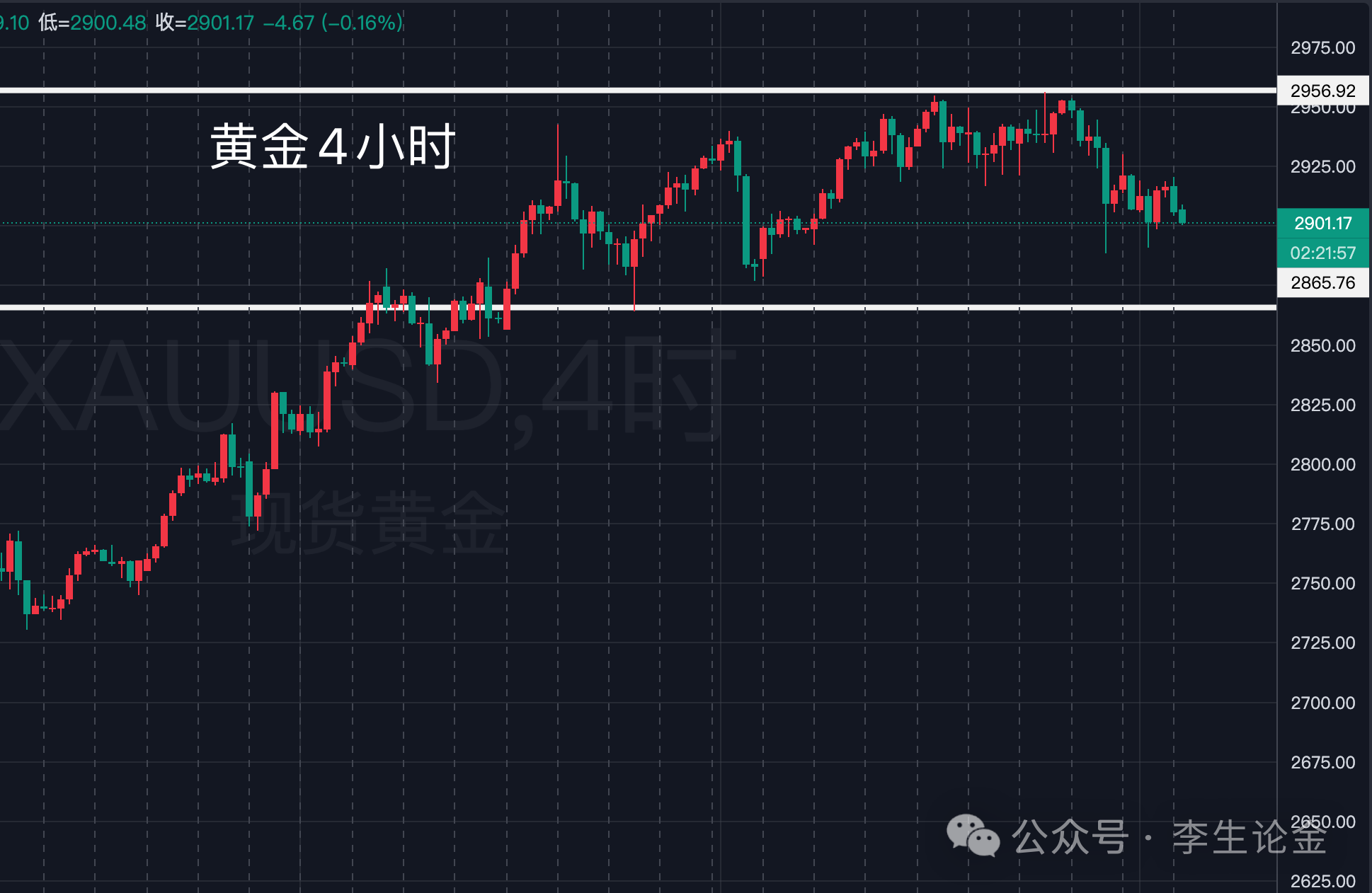 今天,我认为可以先以2890下方作为支撑看反弹,如果亚盘走弱,欧盘也没有撑住,那美盘前反弹可以考虑去跟空,我认为还是震荡行情,不用急于去追空。