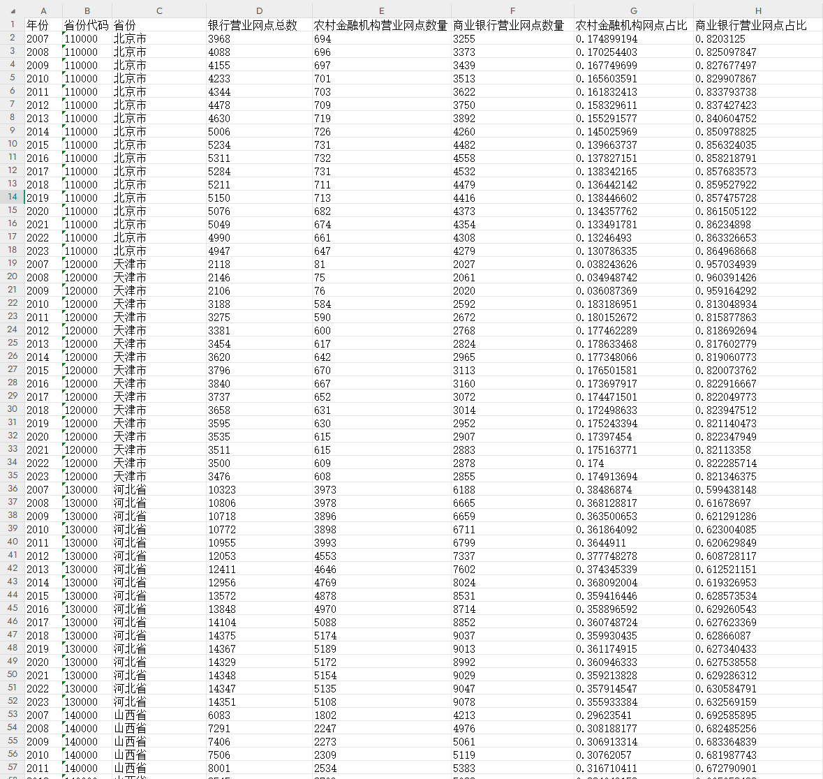 7.银行网点分布:省份名称市县名称 银行网点名称 银行代码 银行网点地址 获取时间